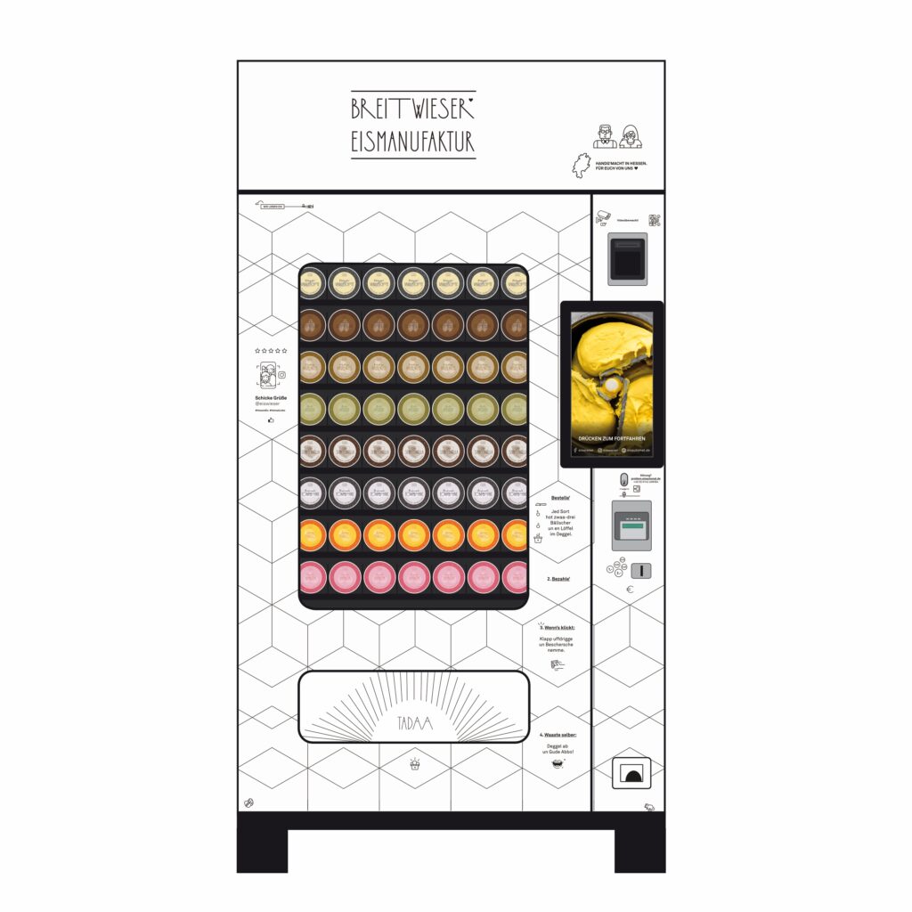 Neben regionalen Supermärkten und Hofläden bekommst Du unser Eis rund um die Uhr in unseren Eisautomaten. Der direkte Weg von den Rohstoffen in den Becher zu Dir nach Hause. Für Euch von Uns.